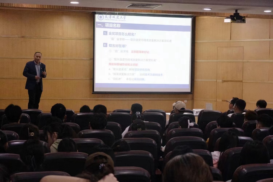 金奖项目负责人以历届获金奖的代表性项目为例,详细介绍了“互联网+”大赛规则、赛道类别、组织形式,分享了如何找到项目切入点、制作路演PPT等工作经验。